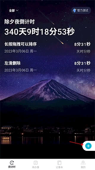 启动应用后,主界面会呈现已有的倒计时条目,点击右下角的加号图标即可开始创建新条目。