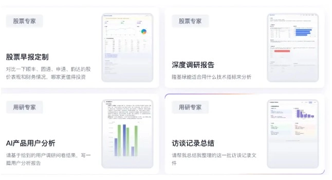 扣子空间首期推出两款专家Agent服务。「华泰A股观察助手」具备每日早报生成功能,针对股票分析的具体问题,也能为你答疑解惑;「用户研究专家」可协助你深度分析用研资料,让你更高效地获取丰富的用户洞察。