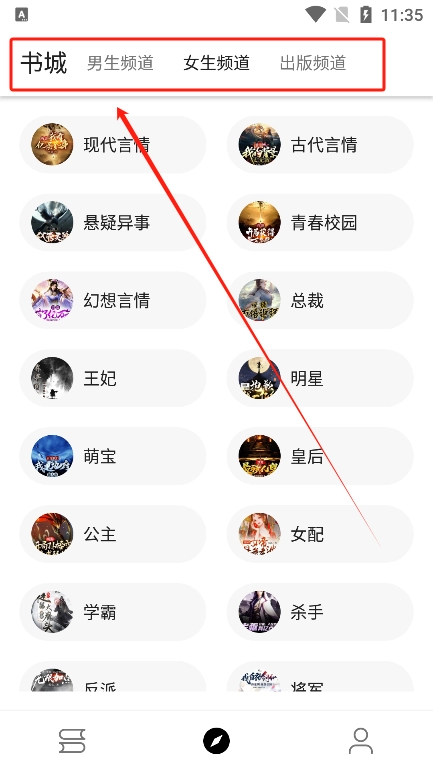 点击喜欢的栏目选择想看的小说资源