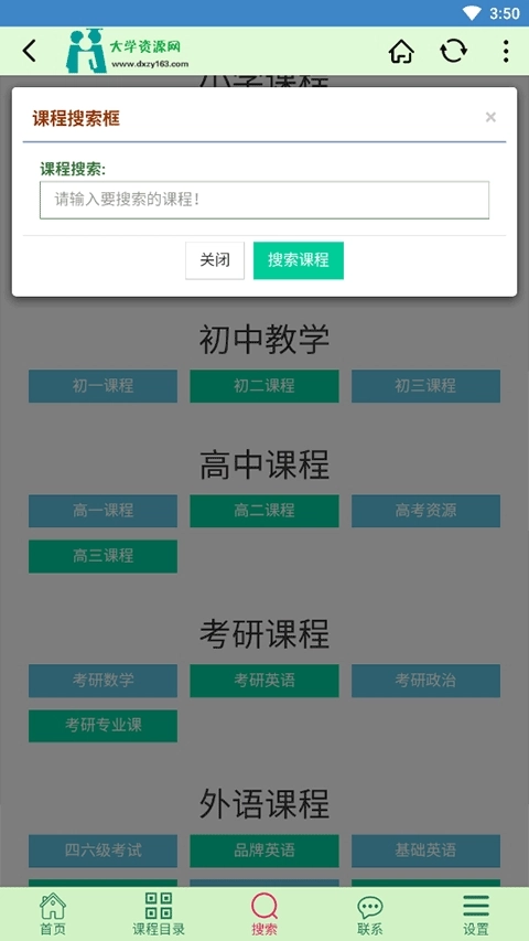 大学资源网是一款小巧却内容丰富的在线学习平台软件。平台上各类课程与资源均可在线共享,为用户整合了全面的专业课内容,学生和老师之间的交流互动也能轻松实现。