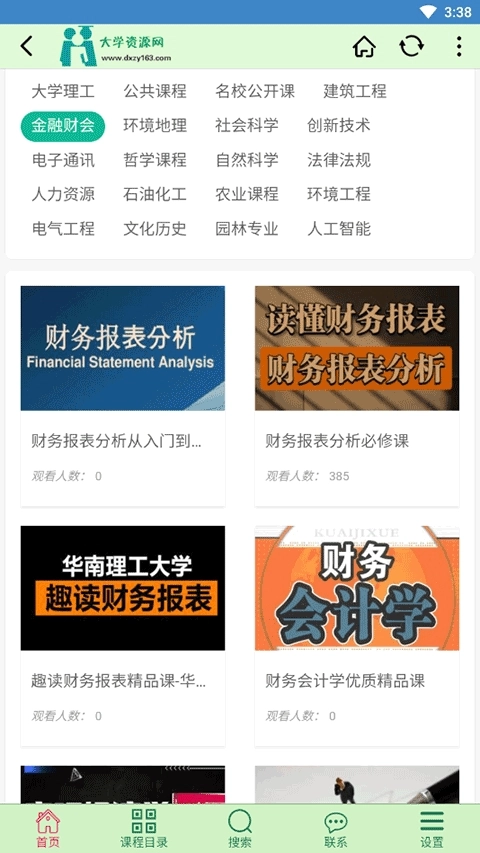 进入大学资源网首页,这里汇聚了各个年级不同类型的课程,同时还有精品推荐课程供大家挑选。