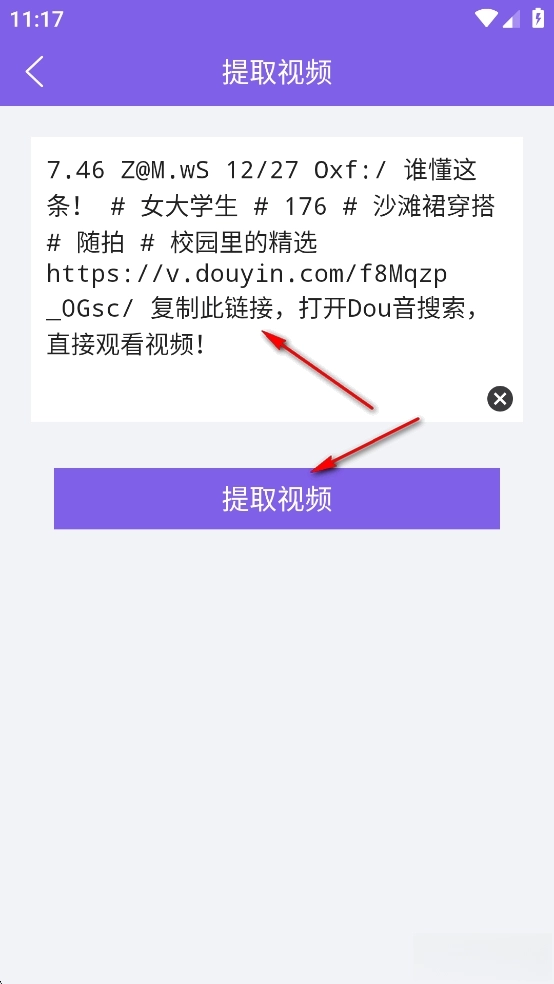 将视频链接粘贴到输入框,点击【提取视频】