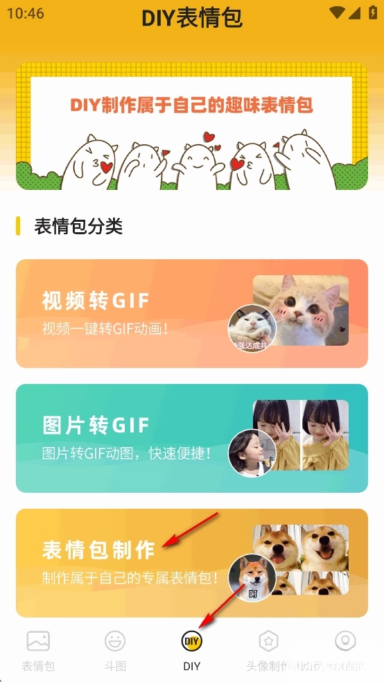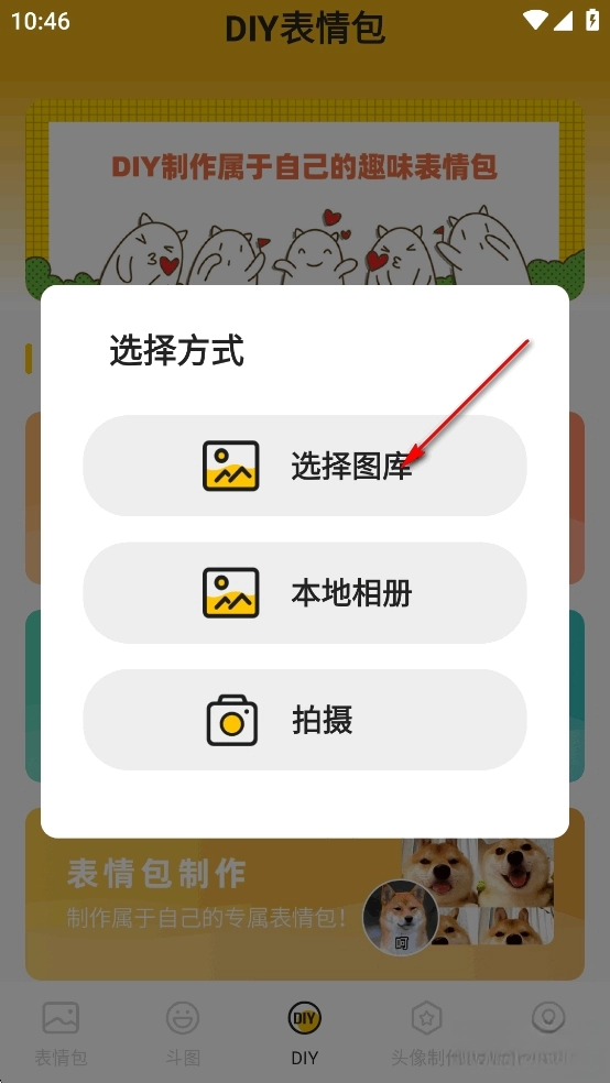 点击【DIY】,再点击【表情包制作】