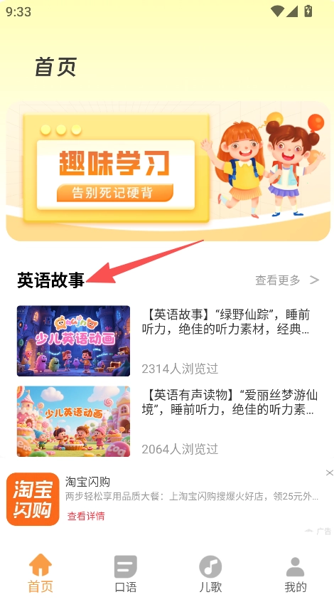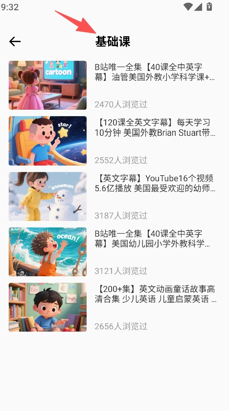资源呈现得十分详尽,课程列表清晰标注了每一课的具体信息,英语故事还会说明对应的浏览量,这样用户能更好地了解资源的价值,从而更理性地选择学习内容。