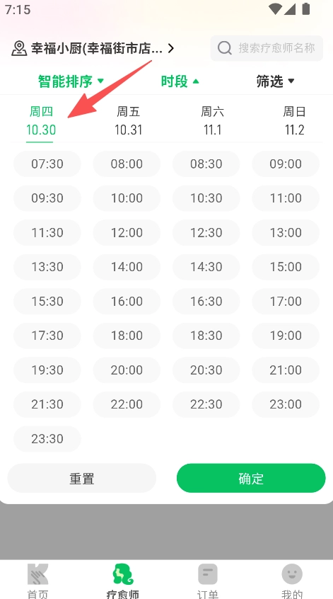 实现时段选择功能,支持多时段选择且可精准定位到具体时间点,用户自主确定服务时间,从而让疗愈服务的时间安排更加合理。