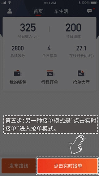 另一种接单模式是“点击实时接单”进入抢单模式。
