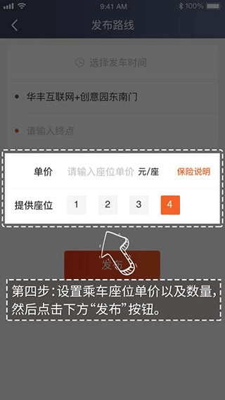 设置乘客座位的单价和数量,接着点击下方的“发布”按钮。