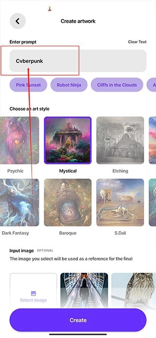 接着找到显示“Type anything”的输入框,在里面输入你期望的风格,比如Cyberpunk(赛博朋克)。