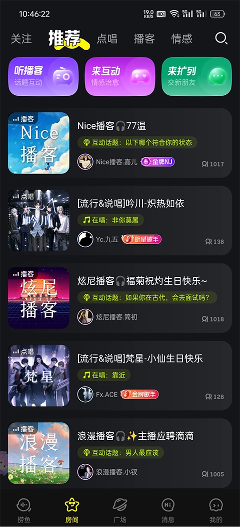 鱼耳语音,鱼耳App是一款融合声音社交、虚拟陪伴与趣味互动功能的语音交友平台。它以声音作为连接媒介,搭建起多元互动场景:从情感电台的暖心陪伴到live点歌的即时互动,从虚拟CP的专属联结到海龟汤推理的烧脑趣味,为Z世代打造了一个专属的声音王国。平台汇聚了拥有各类特色声线的主播,能满足声音爱好者的不同偏好;用户可全天24小时随时登录,参与语音畅聊、线上交友、情绪倾诉或游戏互动。其中,虚拟CP系统支持角色定制与语音互动,为用户带来沉浸式的陪伴体验;而备受欢迎的“海龟汤”推理玩法,则能有效打破社交壁垒,让交流过程更具趣味性。