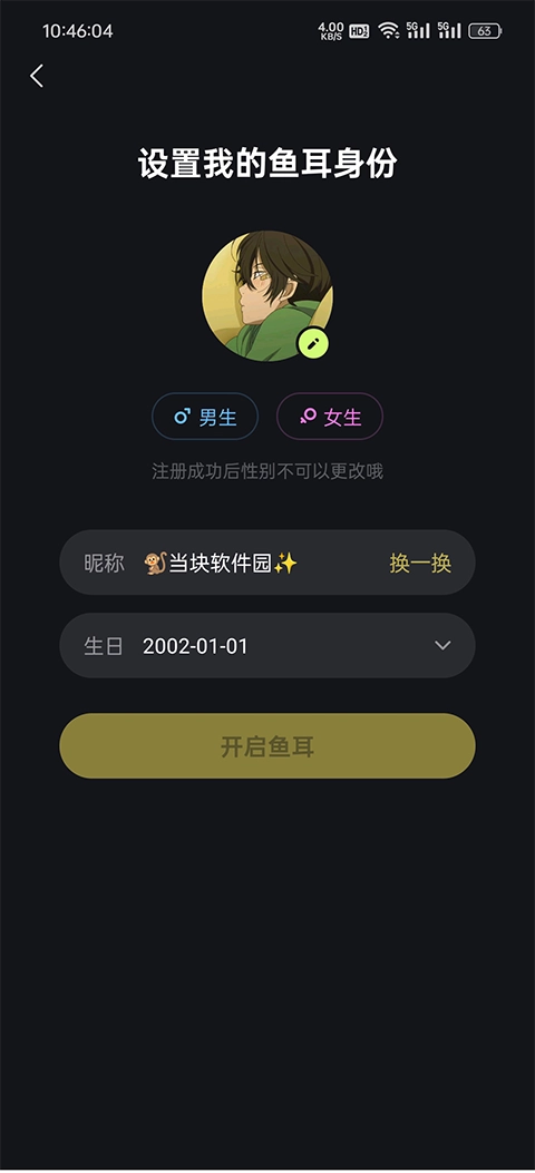 接下来用户能够对自己的身份信息进行设置,涵盖性别、昵称、生日这类基本内容。