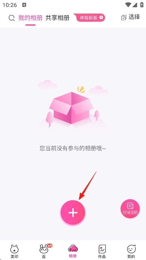 打开美印兔兔,点击相册-我的相册-添加按钮;