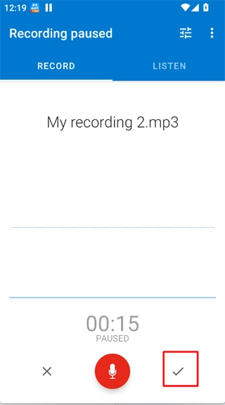 录音结束后,点击右下角的“√”按钮即可完成保存操作,录音内容会以文件的形式存储在本地设备中。