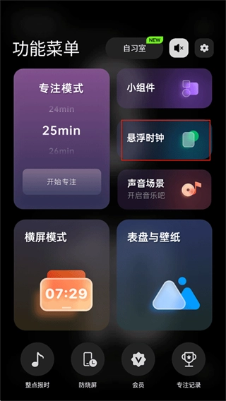 在悬浮时钟页面挑选一款钟意的时钟组件,点击它就能在屏幕上呈现出来。