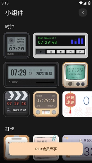 您也可以点击上方的小组件功能,在当前页面添加小组件至桌面,不过该服务需要开通plus会员才能使用。