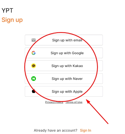 目前有以下几种不同的注册途径,涵盖邮箱、谷歌、kakao、naver、le等不同渠道。