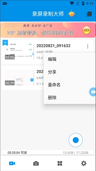 所有录制好的视频都会在这里展示,你可以快速完成分享操作,也能结合软件自带的视频编辑与压缩功能,对视频进行剪辑处理。