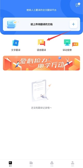 点击“语音翻译”按钮,进入翻译页面后,长按麦克风图标并说出你想要翻译的内容。