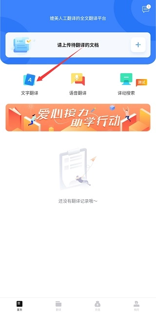 点击“文字翻译”按钮,进入翻译页面后,输入需要翻译的文字内容。