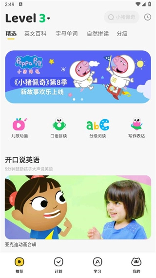 软件内设有分级英语绘本,助力孩子循序渐进地提升阅读能力,在阅读过程中收获满满的成就感。