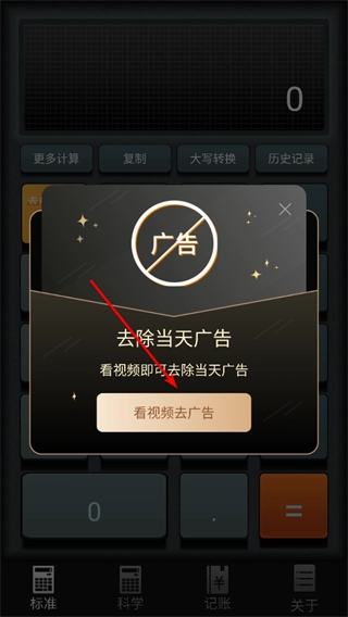 在弹出的窗口中点击“看视频去广告”选项,就能清除当天的广告。