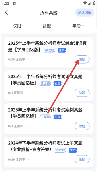选择具体年份的真题,点击“做题”。