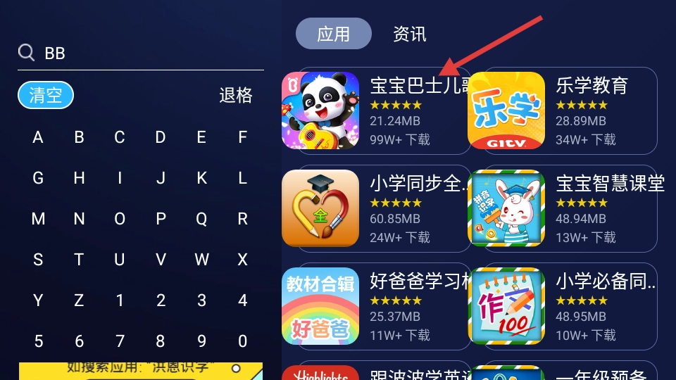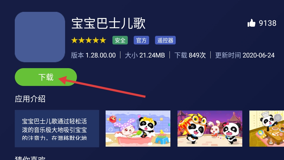 在搜索结果里找到【宝宝巴士儿歌】这款应用,点击它就能进入对应的详情页面。