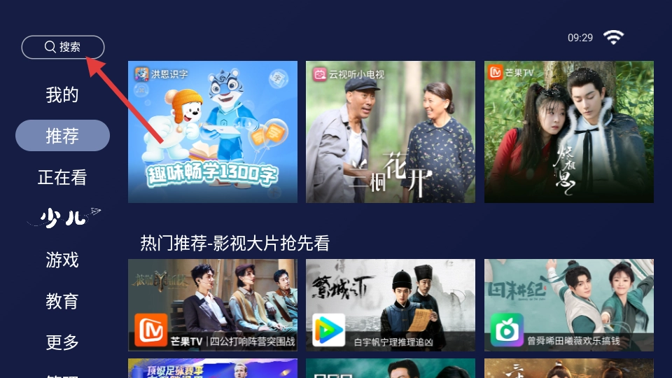 点击左上角的【搜索】按钮,就能进入搜索界面来查找应用。