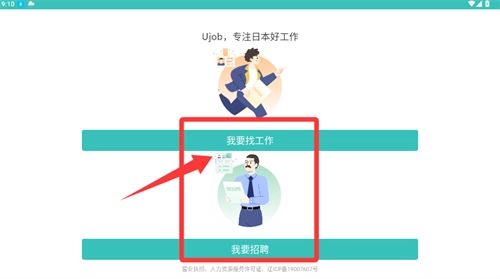 Ujob进入软件首页,进行用户注册与登录;