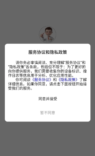接下来请阅读“服务条款”与“隐私政策”的内容,之后点击下方的“同意”按钮以进入下一步操作。
