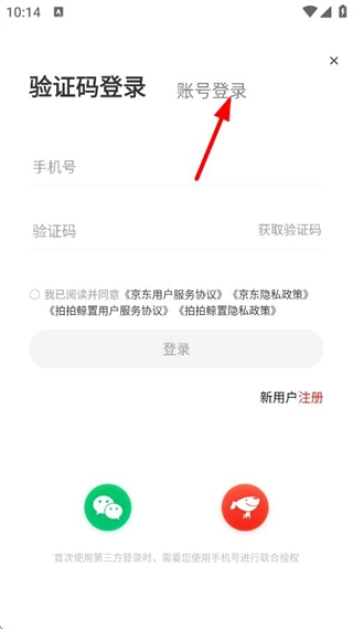 在登录方式选择界面,点击账号登录选项,跳转到账号登录页面。