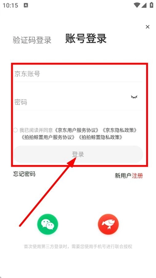 在账号登录界面,输入京东的账号与密码,点击登录按钮,即可完成登录流程。