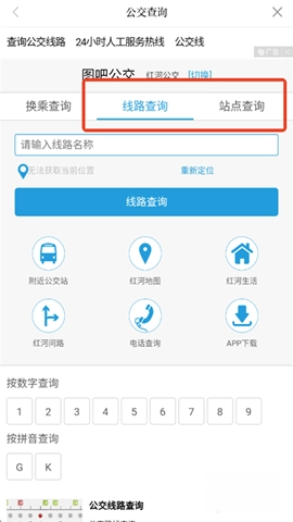 在服务版块中找到公交查询功能;