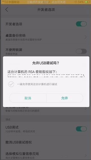 打开开发者选项与USB调试功能,当出现允许调试的提示时进行确认,这样就能完成投屏操作了。