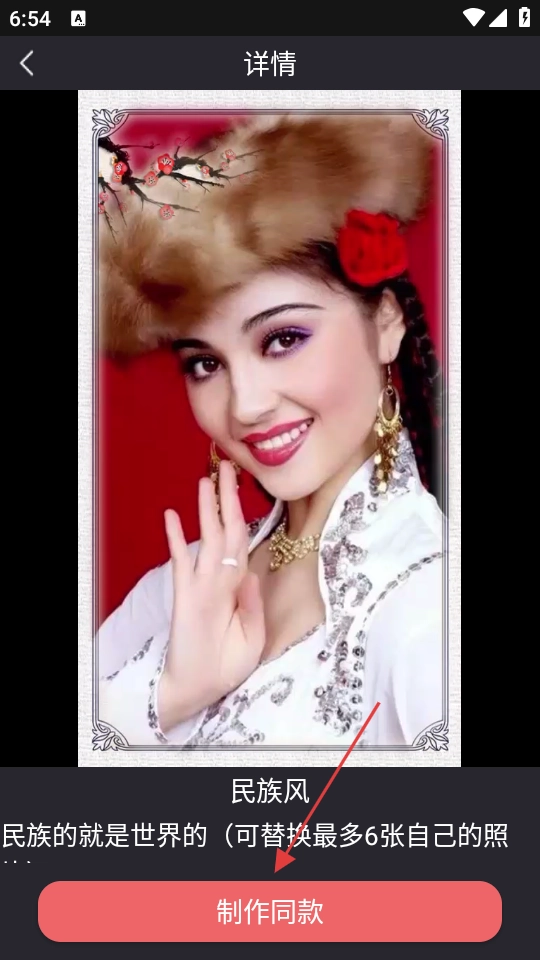 进入【民族风】模板详情页后,点击【制作同款】按钮。