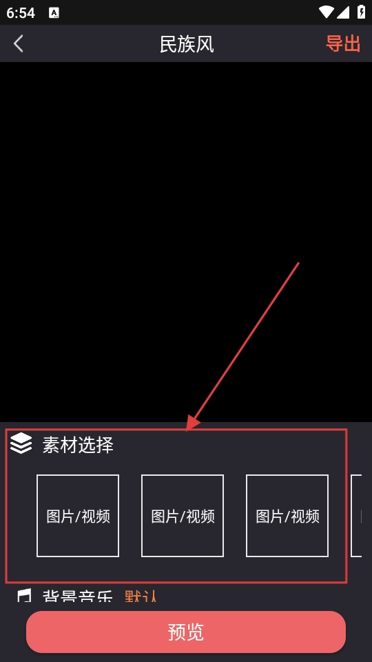 在页面的【素材选择】区域进行制作时,你可以添加图片或者视频素材,以此来完成同款民族风作品的制作。