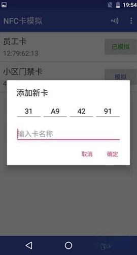 把卡片贴到手机背面,等手机识别完成后,接着输入卡片名称并把卡片信息保存好。
