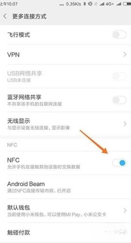 打开手机NFC功能,这里以小米手机为例进行说明。