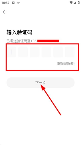 在验证码输入界面,填写好收到的验证码后点击“下一步”按钮,即可完成注册流程。