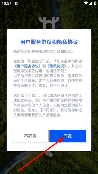 在用户服务协议与隐私协议的弹窗界面,点击同意按钮,即可进入注册登录页面。