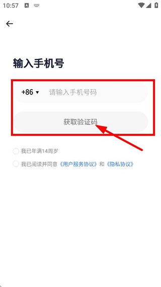 在手机号码输入页面,输入号码后点击“获取验证码”按钮。