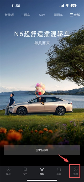 打开汽车服务类应用,点击底部的“我的”选项,即可进入个人中心页面。