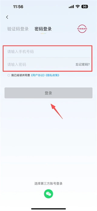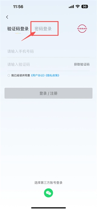 在登录选择界面,点击密码登录标签,即可切换到密码登录页面。