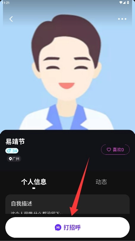 查看用户完整资料后,点击打招呼功能按钮,就能开启与对方的实时聊天互动交流。