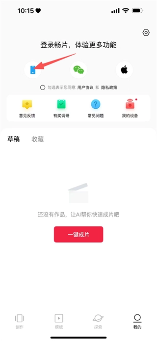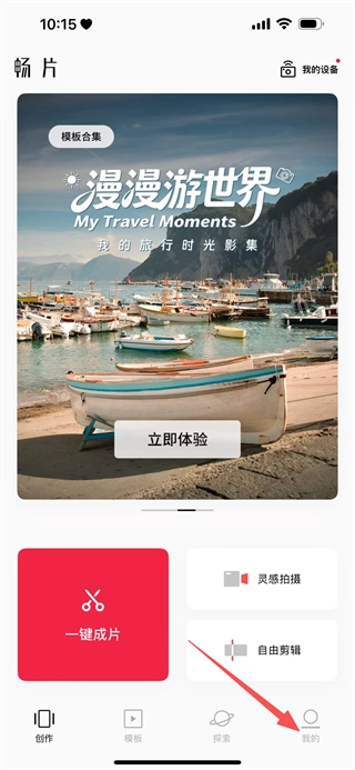 在畅片的首页,点击底部我的,进入个人页面。