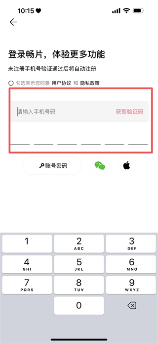 在手机号登录界面,填写手机号码,点击获取验证码,输入验证码后即可完成登录流程。