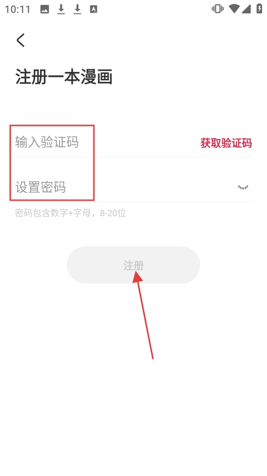 在注册页面,填写【输入验证码】与【设置密码】这两项内容后,点击【注册】按钮即可完成注册操作。