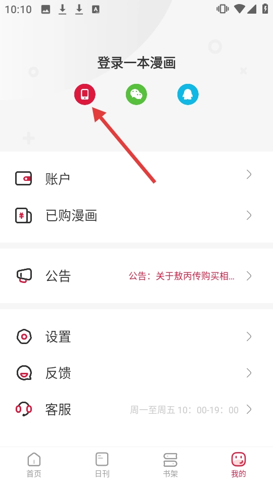 在漫画应用的首页,点击右下角的【我的】按钮,即可进入个人页面。