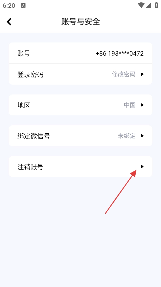 在账号与安全页面里,找到【注销账号】这个选项并点击它。