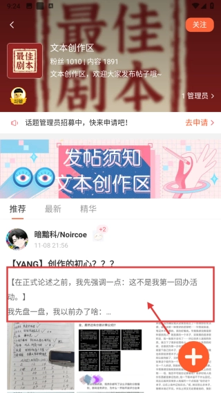 在话题分类页面,选择文本创作区话题,进入该话题详情页面。