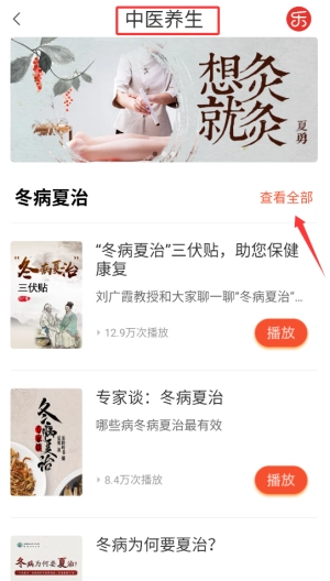 2、在浏览音频列表过程中,能够借助分类标签或者热度排序进行筛选,从而找到自己感兴趣的养生知识节目。